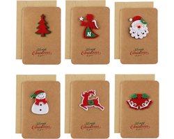 Pack van 6 vrolijke kerstkaarten, Jsdoin 6 stijlen Xmas Winter Happy Holiday kraftpapier wenskaarten met enveloppen, kerstman kerstboom cadeaubon voor winter nieuwjaarscadeau