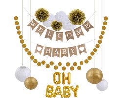Babyshower versiering - Geboorte versiering Jongen Meisje - Babydouche decoratie - goud wit - oh baby shower feest pakket - slinger jongen meisje