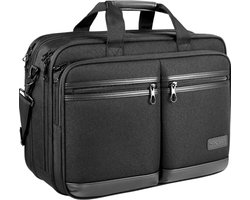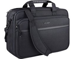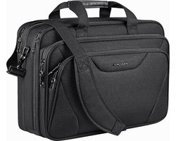 Kroser 17-Inch Laptoptas - Uitbreidbare Aktetas - Waterbestendig Nylon - RFID Bescherming - Ruime Vakken - Dames / Heren - Lichtgewicht - Superieure Schuim Bescherming - Zwart