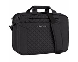 Kroser 17 Inch Laptoptas - Waterbestendig - schoudertas - Superieure Schuim Bescherming - Uitbreidbare Aktetas - Nylon - RFID Bescherming - Dames / Heren Computertas - Ruime Vakken - Lichtgewicht - Uniek Design - Zwart
