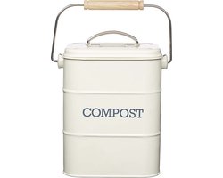 Retro Compostemmer - Compostbakje Keukenaanrecht - Gft Afvalbakje met 2 Filter - 3L / Crème wit