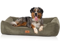 Knuffelwuff hondenbed van ribfluweel met handgeweven uiterlijk Olivia M-L 85 x 63 cm khaki