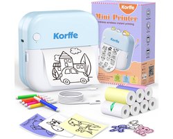 Korffe Mini Printer – Bluetooth Sticker Printer met 7 Rolletjes Papier – Compatibel met Android & iOS – Voor Notities & Dagboek