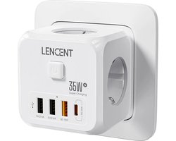 7 delige USB stopcontact splitter met schakelaar - 3 stopcontacten 3 USB's en 1 Type C - Stekkerdoos - Verdeeldoos - Verdeelstekkers