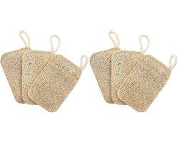 Loofah-spons - 6 Stuks - Pannen Scrubber - Luffa - Schuurspons - Natuurlijke spons - Afwas Pad - Afwasspons - Keukenspons - Schoonmaaksponzen - Herbruikbaar - Scrub - Geschikt voor keuken en badkamer - 11*7cm - Lichtbruin