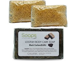2x Black Carbon met Natuurlijke Luffa Spons – Loofah Body Care Zeep – Scrub & Reiniging – Voor Lichaam, Gezicht en Handen – Badzeep met Exfoliërende Werking