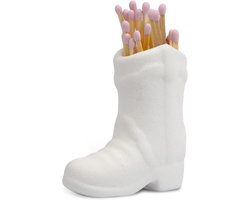 LUTER Cowboy Boot Match Holder, Beautiful Ceramic Boat Match Holder with Striker, Indoor Decoration Accessory for Bathroom Bedroom Kitchen (White)