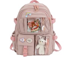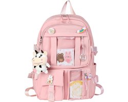 Schooltas - Rugtas - Tas - Rugtas Meisje - Schoolrugzak - Stijlvolle Kawaii Rugzak met Pin en Hanger - Grote Capaciteit Kinderen Premium Rugzak - met Zijvak en Voorvak met Ritssluiting - Roze