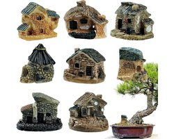 JGS Premium - Miniatuur Tuinieren Landschap Accessoires - Fee Tuin Stenen Huizen - Terrarium Poppenhuis Decoratie - Set van 8 stuks