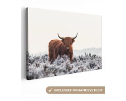Canvas schilderij - Schotse hooglander landschap 140x90 - Kamer decoratie accessoires - Schilderijen woonkamer dieren - Koe wanddecoratie slaapkamer - Muurdecoratie keuken - Wanddoek interieur binnen - Woondecoratie huis - Woonaccessoires