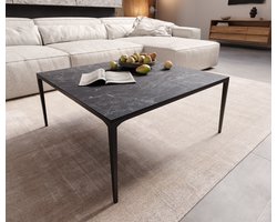 Salontafel Levente Keramisch Laminam®Nero Greco grijs 85x85 cm Onderstel metaal zwart