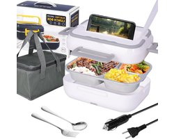LiveGo Elektrische lunchbox 60 W - Draagbare warmhoudcontainer voor eten - Geïsoleerde draagtas - Vork en lepel - Volwassenen - Kinderen - Werk - Thuis - Kantoor - Auto - Wit