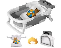 LiveGo Babybadje, opvouwbaar babybadje, opvouwbaar babybad voor pasgeborene tot peuter, draagbaar reisbabybad met realtime temperatuurmonitor+zacht kussen, babybadset van 0-36 maanden