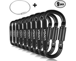 lixada - karabijnhaak - musketonhaak - karabijnhaak sleutelhanger - karabijnhaak met schroefsluiting - karabijnhaak rvs - karabijnhaak zwart - 9 Pack - niet voor te klimmen