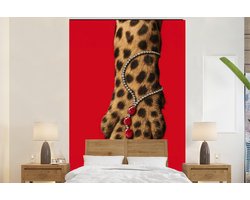Behang - Fotobehang Poot - Luipaard - Ketting - Edelstenen - Breedte 145 cm x hoogte 220 cm