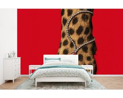 Behang - Fotobehang Poot - Luipaard - Ketting - Edelstenen - Breedte 225 cm x hoogte 350 cm