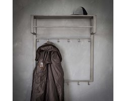 Wandkapstok Industrial | 12 (2x6) haken | 80 x 30 x 89 cm | kapstok met hoedenplank | grijs matelen frame | industieel / landelijk