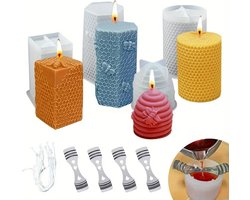 MGM Trading - 4-delige kaarsvorm, cilindrische kaarsvorm voor het maken van kaarsen Harsvorm, siliconen 3D-kaarsvorm Bee Honeycomb Candle Making Kit voor zeep Klei DIY kunstcadeau