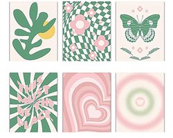 Morobor Deense pastelkleurige wanddecoratie, esthetische groene en roze poster, kamerdecoratie, niet-ingelijst, canvas, abstract, meisjes, vrouwen, slaapkamer, studentenkamer, 6 stuks (20 x 25 cm)