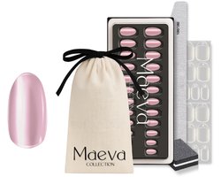 Maeva Collection Soft Gel Nagelset – Luxe Herbruikbare Press-On Nails – All-in-One Set – Oud roze cat eye – Zacht voor de Natuurlijke Nagel