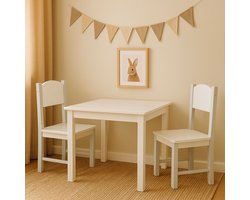 Maxx Kidz Kindertafel met 2 Stoeltjes - Speeltafel voor Kinderen - Ideaal als Tekentafel - Peuter Stoeltje met Tafel - Kindermeubels van Hout - Wit