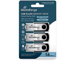 MediaRange | USB Stick | 16 GB | USB 2.0 | Twister | Zwart | 3 Stuks in verpakking