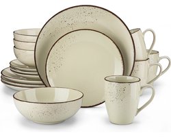 MensStore 16-Delige Serviesset - 4 Persoons - Beige Glazuurlaag - Inclusief Dinerborden, Dessertborden, Kommen en Mokken - Beige