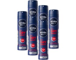 NIVEA MEN Dry Impact Anti-Transpirant Spray - 72 uur bescherming - Met mineralen en DryPlus - Alcoholvrij en antibacterieel - 6 x 150 ml - Voordeelverpakking