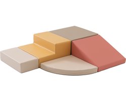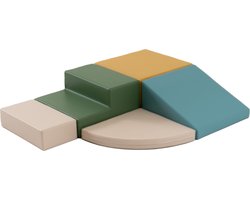 Set van 5 kleine foam blokken/speelkussens (turquoise/beige/mosterdgeel/donkergroen)