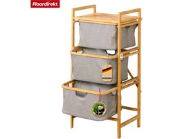 FLOORDIREKT Wasmand Missouri - Bamboe Wasverzamelaar - Met 3 Vakken - Voor Vuile Was - Houten Wassorteerder Met Wasbox - Grijs & Bamboe-Kleuren