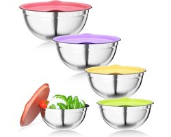 Saladekom set van 5, Mengkommen gemaakt van roestvrij staal met luchtdichte deksel, 4.5 L / 3.5 L / 2.5 L / 2 L / 1.4 L Kitchenaid kommen zijn stapelbaar en vaatwasmachinebestendig, voor mengen en serveren.