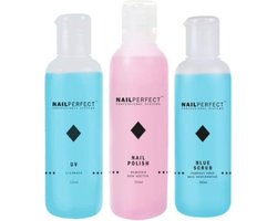 Nagel vloeistoffen Set voor het voorbereiden en verwijderen van Gel nagels - UV Cleanser - Remover - Blue Scrub - 300 ml