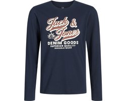 JACK&JONES - JJELOGO TEE LS O-NEC 2 COL AW25 NOOS JNR - Jongens - Lange mouwen shirts - navy - maat 164