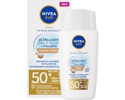 NIVEA SUN UV Face Ultra Light Zonnebrand Gezicht SPF50+ - Medium Tinted - Wintersport - Ski Zonnebrandcrème - 40ML