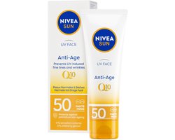 - Bewaar Nivea Sun UV Face Anti-Aging Q10 SPF50 50 ml aanbiedingen op je online verlanglijst om de prijzen op te volgen of met je vrienden te delen. Deel je lijst en je familie en vrienden weten wat ze moeten kopen voor je verjaardag, sinterklaas, kerstmis of een andere gelegenheid! Lees hier hoe je een BOL, Coolblue én Amazon verlanglijst kan maken en delen.