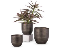 Oairse Set of 3 flower pots made of galvanised steel, perfect for modern decoration and plant pots, decorative zinc, for indoor and outdoor use, 16.5 cm / 13.5 cm, 12 cm, black