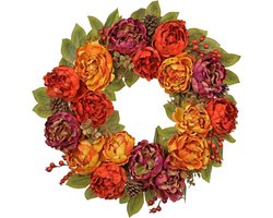 Goodivery ® - Herfstkrans - Kunstmatige Herfstdeurkrans - 60cm - Pioenrozen en Gemengde Bloemenkrans met Esdoornbladeren en Bessen - voor Binnen en Buiten - Herfst Thanksgiving Oogst Deurversiering