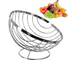 Design Fruitschaal Rond - Schaal voor fruit - Ronde Oblik Design Fruitmand - Metaal - Afm 26.5 x 24 x 19 Cm - Zilver