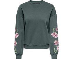 Only Trui Onlbrooklyn L/s Embroidery Box Swt 15355805 Balsam Green/pari Flower Dames Maat - S