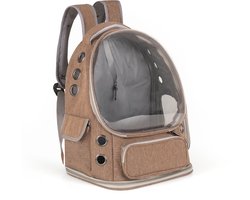 Petsona Uniseks Huisdier Rugzak - Transparante Koepel voor Zicht en Licht - Ventilatie Rondom met Gaaspanelen en Grote Ritsopening - Ergonomische Verstelbare Schouderbanden - Veilig Reizen - Bruin