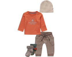Noppies - Kledingset - 5delig - Broek Jordrup Burly wood - Longsleeve Jan Phyl Bombay Brown - Beanie Joliet Sand Melange - Sokken Jerzu Burly wood - Maat 80
