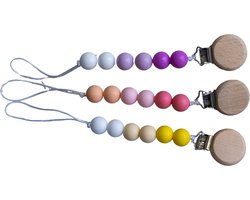 Babyboel Speenkoord - Speenkoorden - 3-delige speenkoordenset Paars, Roze en Geel - Veilig en Duurzaam - Fopspeen - Fopspeenkoord - Kraamcadeau - Kraamcadeau meisje