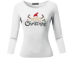 Dames T-shirt / Kerstkleding / Christmas Familie bijpassende glitter outfits | 3/4 Mouw | Wit | Maat L