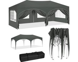 Partytent 3x6 m Grijs - Partytenten opvouwbaar - Paviljoen - Party tent waterbestendig - Metaal Easy-Up mechanisme - 50+ UV beschermingsfactor - Feesttent met afneembare 6 zijwanden
