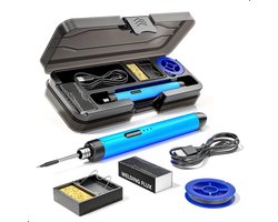 Tech Essentials Draadloze Soldeerbout - 8W - USB-C - Met Tin - Kit - Fijnsoldeerwerk - Pen - Accu - Soldeerset - Solder - Elektrisch Gereedschap - Blauw