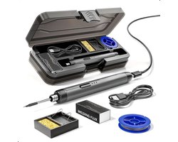 Tech Essentials Draadloze Soldeerbout - 8W - USB-C - Met Tin - Kit - Fijnsoldeerwerk - Pen - Accu - Soldeerset - Solder - Grijs