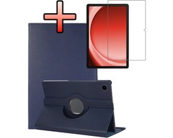 Hoesje Geschikt voor Samsung Galaxy Tab A9 Plus Met Screenprotector Hoes Case Hard Cover 360 Draaibaar Hoesje - Donkerblauw