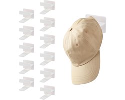 Allecta - Cap houder voor wand, 12 stuks, zelfklevend cap rek voor honkbalpetten en sjaals, opbergrek wit