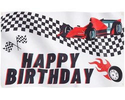 Runesol verjaardagsvlag geblokt, 91x152 cm, 4 ogen, één in elke hoek, feestdecoratie, raceauto, F1, vlaggen van topkwaliteit voor binnen en buiten, gelukkige verjaardag