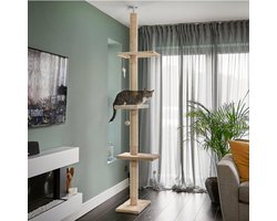 Floor to Ceiling Cat Tree 240-288cm - Beige Runesol Scratching Post with 3 Large Platforms